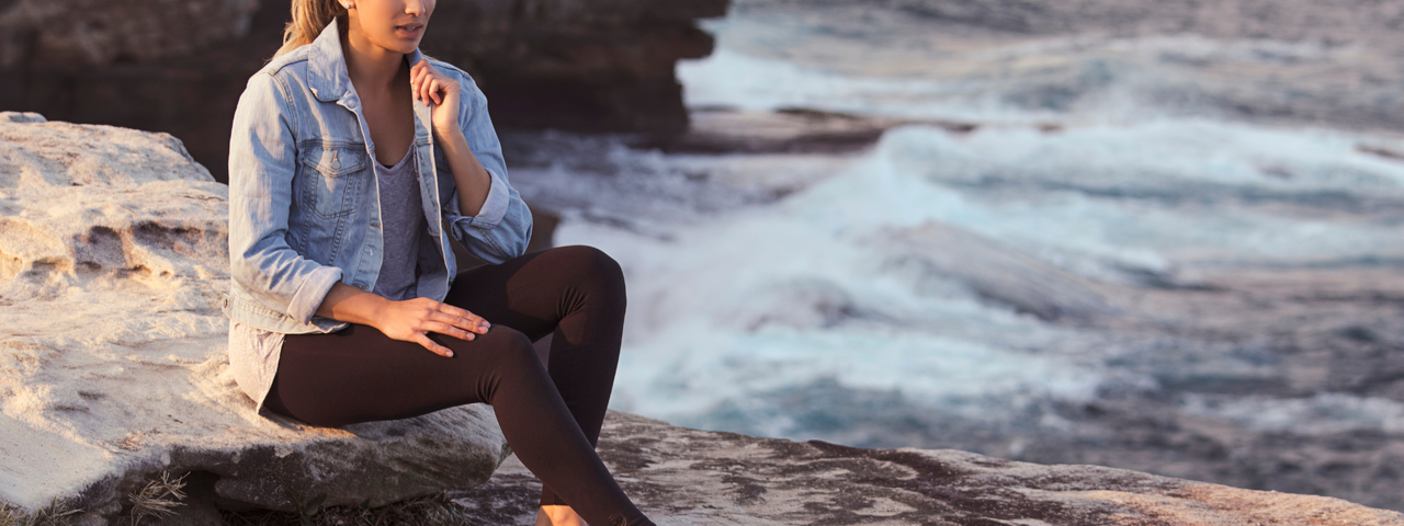 Thick, matte feel, stretchy, supportive & oh so comfy!